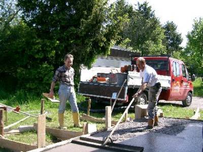 Die freiwilligen Helfer beim betonieren des Fundaments des Anbaus.