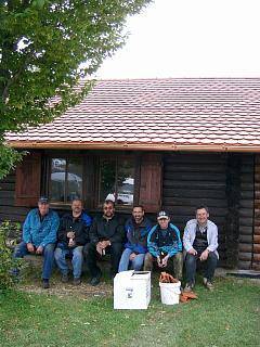 Am Abend feierte man unter den Helfern ein Richtfest. Es durfte nichts fehlen: Ewald Kleiner ( unten links) und Vinzenz Greber standen aufs Dach. Vinzenz gab einen Richtspruch zum Besten. Er der lautete wie folgt :